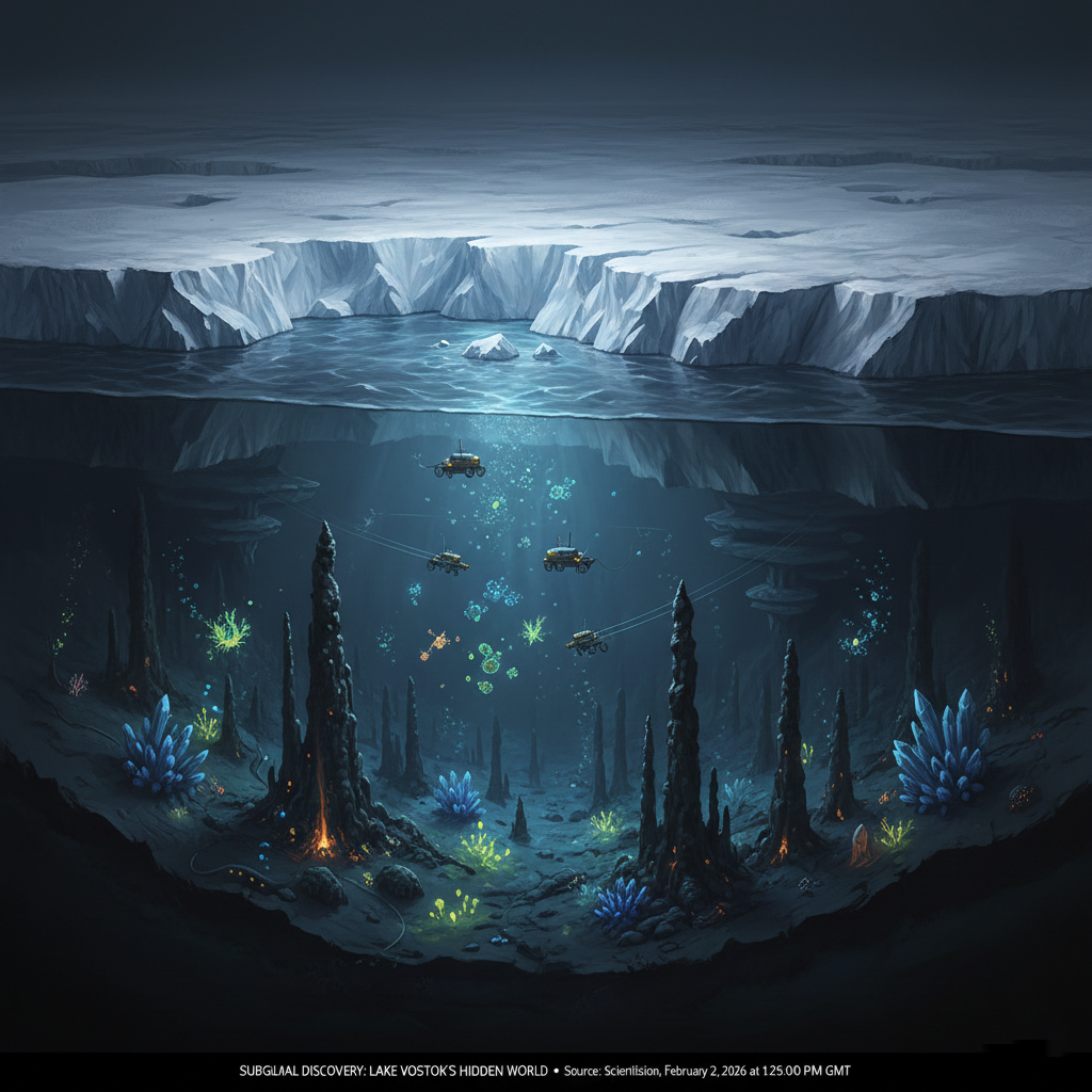 Hidden beneath kilometers of solid ice lie over 400 subglacial lakes. The most famous, Lake Vostok, has been sealed off from the outside world for up to 25 million years. When scientists finally breached its surface in 2012, they found a world that hadn’t seen light or air since long before humans existed. These isolated ecosystems are filled with microorganisms that thrive in total darkness, offering a potential blueprint for life on other icy moons like Europa.